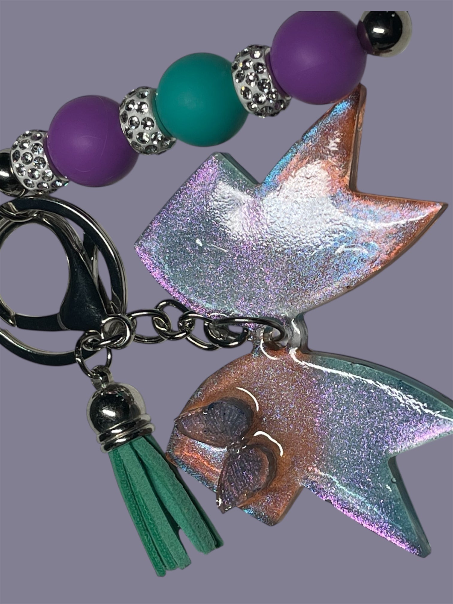 Add a touch of charm to your everyday essentials with this handmade Bow with Butterfly Resin Keychain. Crafted with care, it features a delicate butterfly encased in clear resin, paired with a stylish bow design. Personalize your keychain by emailing us your preferred color choice when you place your order. This unique accessory not only keeps your keys organized but also adds a graceful flair to your style.